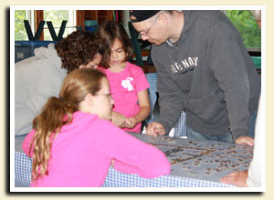 Ryde Lake Camp - Family Camp Family & Friends Camping is held for a few weeks each August Book for a few days or a week... Enjoyed by all ages, from little ones to seniors See Rates/Dates/Register for info Campers live in a style that could be called comfortably rustic. No room service, no TV or computer... but we do have fresh air, peace and quiet, misty mornings, starry nights, call of the loon, chattering squirrels, twinkling fireflies, and blueberries on Old Baldy. You can be as active or relaxed as you wish. Mealtimes are the only scheduled activities. Swim, hike, canoe, kayak, paddleboat, or just relax on the dock Accommodation is in our cabins, and meals are served camp-style in the dining hall Facilities include a spacious dining hall, comfort station with toilets/sinks/showers, outdoor pavilion, swim waterfront, canoes/kayaks, and hiking trails Sleeping accommodations: